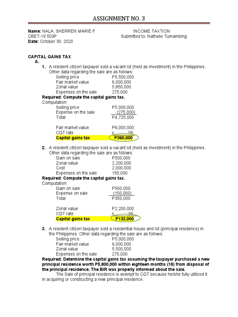 Assignment No 3 Pdf Capital Gains Tax Taxpayer